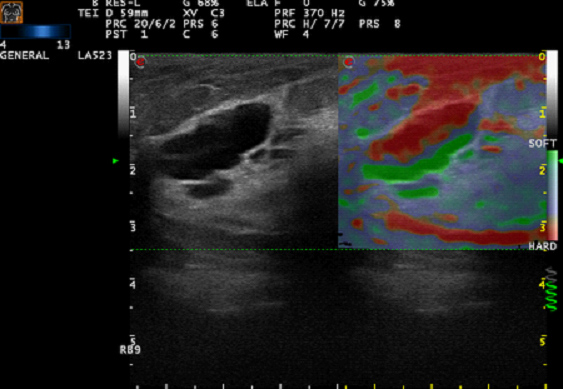 在超声检查时,利用外加在探头上的压力变动、利用脉冲声压对组织的压力变化,利用心搏或呼吸活动对邻近组织传导的压力或者导管式超声探头在心腔或血管腔内所受到变化的血压,均可使合适的脏器或病灶发生弹性形变,或称应变。利用应变量大小经彩色(或灰阶)调制成像,并与常规的声像作比较的方法,称超声弹性成像。