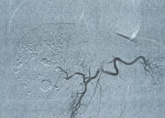 肝动脉栓塞后血管瘤的供血动脉被阻断