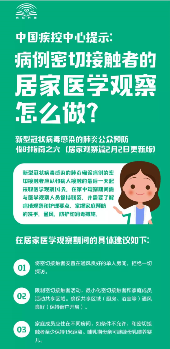 【更新版】中国疾控中心提示:病例密切接触者的居家医学观察怎么做?(居家观察篇)