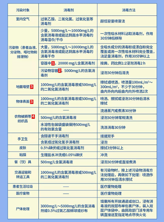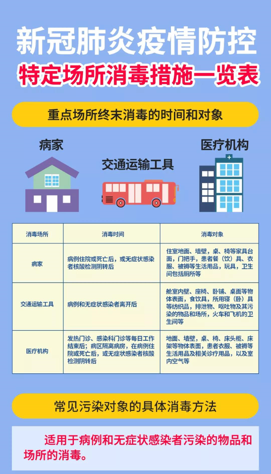 新冠肺炎疫情防控 特定场所消毒措施一览表