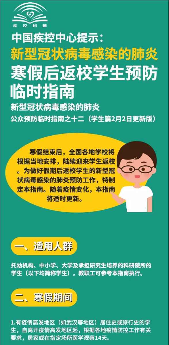 【更新版】中国疾控中心提示:寒假后返校学生预防(学生篇)