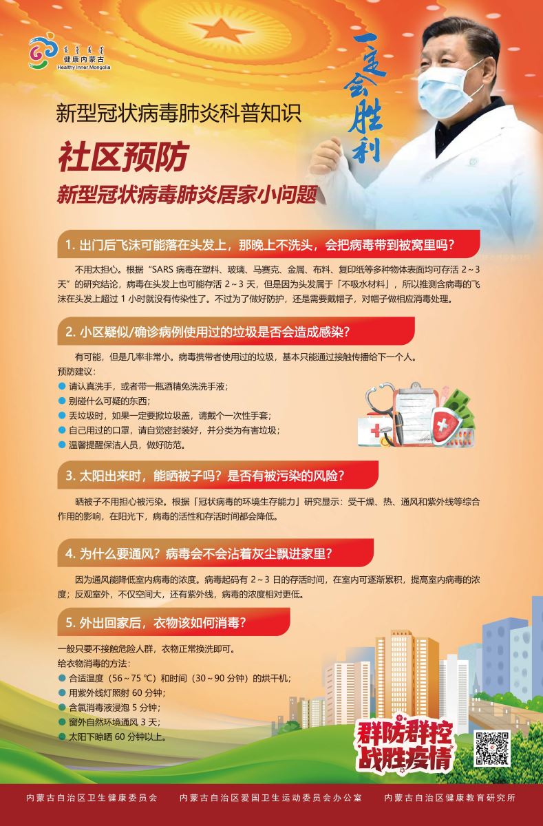 新型冠状病毒肺炎科普知识——社区预防新型冠状病毒肺炎居家小问题