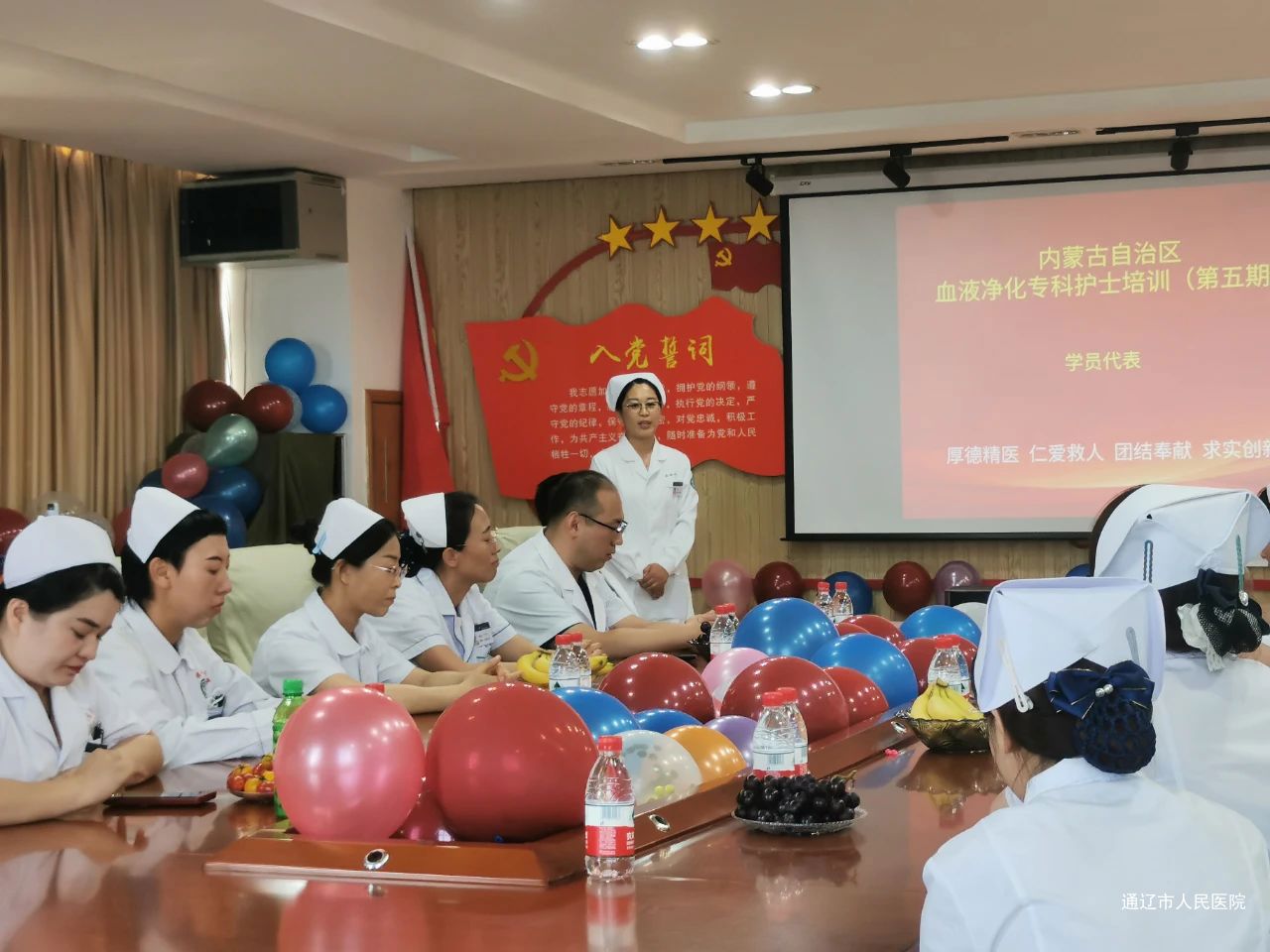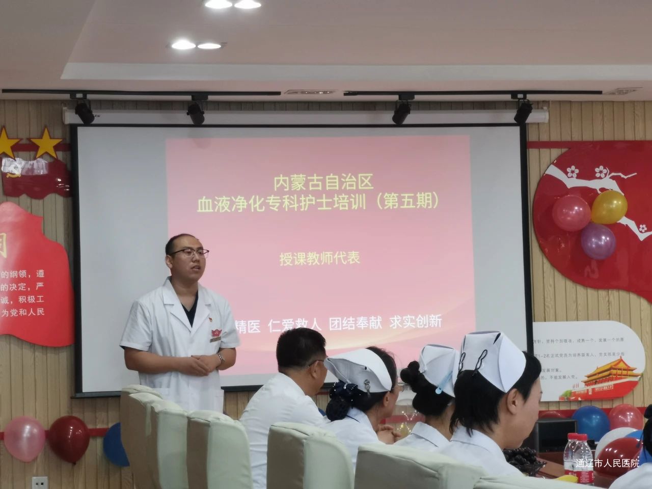 为弘扬习近平总书记中华民族共同体意识,牢记习总书记对医疗工作的殷切期盼。由我院血液净化科承办的内蒙古自治区血液净化专科护士培训(第五期)于6月17日圆满结束,参加此次培训的17名学员成绩合格,顺利结业。护理部副主任刘建秀、杨敏,血液净化科主任白刃,护士长姜雪娇,授课教师代表及全体受训学员参加结业仪式。杨敏、白刃、姜雪娇及授课教师代表和培训学员代表分别发言。