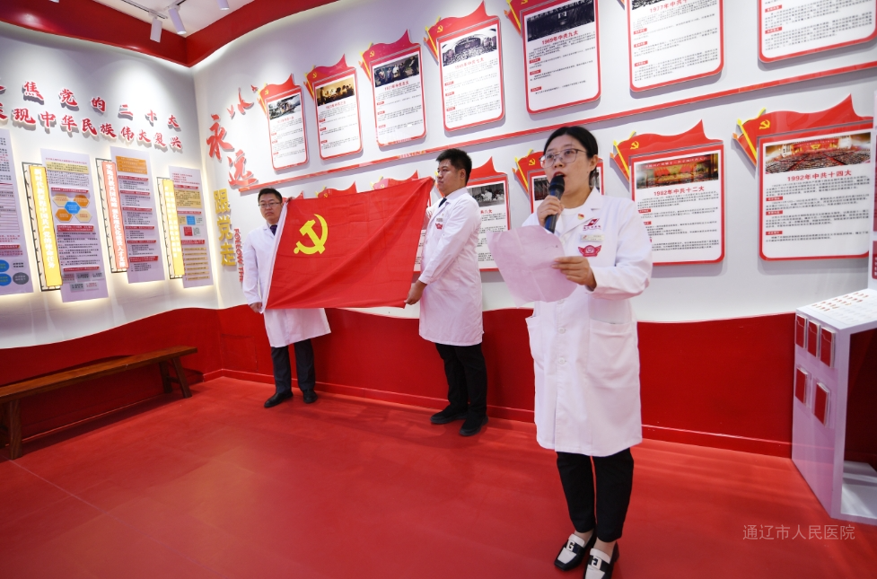 在中华人民共和国成立75周年来临之际,为进一步提升党组织的凝聚力、战斗力、号召力,激发广大党员爱党爱国之情,踏上新征程,建功新时代。9月30日上午,我院新发展党员入党宣誓仪式在院党史馆举行。院党委书记金洁,副院长王丽香,各支部书记、党员代表参加仪式。