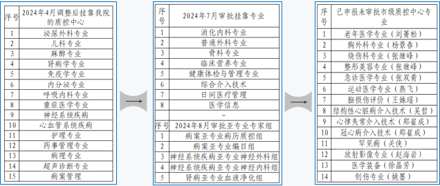 今年4月我市卫健委对质控中心进行全面调整,直至8月,审批挂靠我院的质控中心共计23个,审批成立亚专业质控中心共计5个、等待审批的质控中心共计14个。