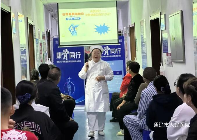 为积极响应2024年骨质疏松日“管体重、强骨骼”的宣传主题,提高大众对骨质疏松症的认识,普及骨骼健康知识,帮助老年人有效预防骨质疏松的发生。近日,我院肾病内科高丽主任带领医护团队举办一场以“骨质疏松早预防,健康生活有保障”为主题的宣讲活动。肾病内科副主任护师曹秋佳及主治医生李东达现场为患者及其家属进行骨质疏松相关知识的宣讲。