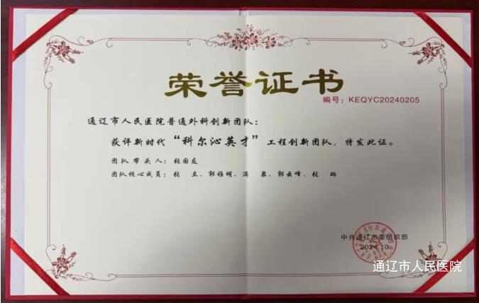通辽市人民医院张国友带领的普通外科团队多年来一直致力于外科领域的临床研究和创新实践。团队秉承医者仁心的职业精神,不断探索新技术、新方法,为患者提供更加精准、高效的医疗服务。此次荣获“科尔沁英才工程创新团队”称号,充分展现了团队在医疗领域的突出实力。