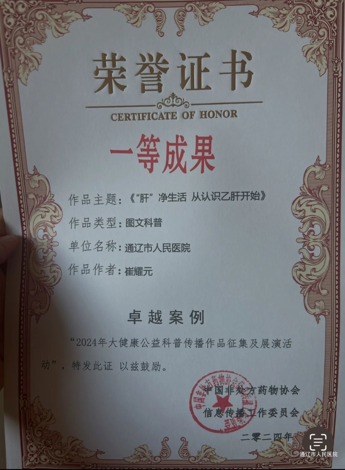 近日,由中国民族卫生协会主办,中国营养学会、中国非处方药物协会信息传播工作委员会等多家单位协办的“大众健康公益科普作品征集及展演”活动在成都落下帷幕。我院选送的10部科普作品,经过初赛与决赛的层层选拔,在全国界内科普作品中脱颖而出,成功斩获一等奖6项,二等奖4项。
