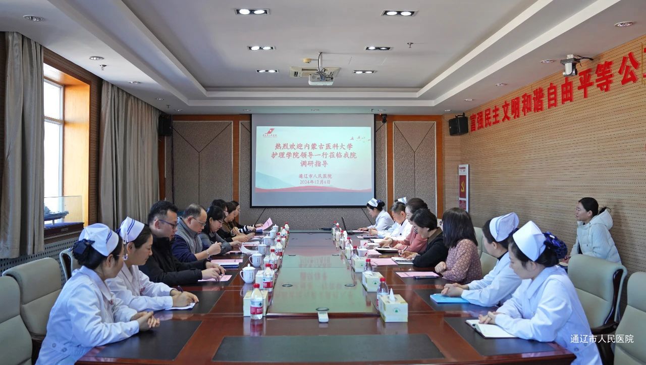 为促进内蒙古医科大学护理学院与我院在护理人才培养、教学资源、临床实践上的深度融合,12月4日,护理学院院长包丽丽,副院长李翀一行六人赴我院调研。我院党委书记金洁,副院长杜艳秋,科教科科长陈晓军,护理教学团队及护理学院学生代表参加会议。会议由护理部副主任杨敏主持。金洁书记表示,多年来,医院高度重视师资队伍的培养,严抓教学质量,本次调研工作是对我院护理实践教学的一次全面检查,希望各位专家不吝赐教,为我院实践教学基地的建设提出宝贵意见和建议,我们会认真梳理专家组的宝贵意见,找差距、补短板,继续加强护理队伍的规范化培训,不断提升我院教学水平。包丽丽就护理学院的发展概况、教师梯队建设、护理人才培养进行了介绍。并表示希望通过此次合作,为护理事业培养出更加优秀的人才。同时对我院护理梯队建设、人才培养工作给予充分肯定。杨敏分别从我院历史沿革、医院概况、教学工作开展情况、未来工作计划等四个方面进行汇报,详细介绍了我院护理学科的发展、护理人员的培养、专科护士培养等工作。对带教师资遴选、护理管理系统、护理师资队伍培养、接收实习生情况、护理实习生全流程管理,本科生实习情况及论文科研指导等方面进行了重点汇报。