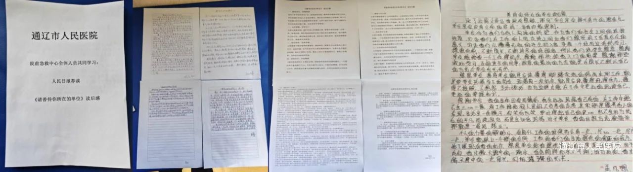 参会人员纷纷表示这篇文章真正触及了心灵,教会大家认清工作的意义,准确定位自己的人生。通过这次学习,大家撰写了《善待你所在的单位》心得体会,将自己对医院深沉热爱凝聚笔尖,书写在纸张上。发展未有穷期,我们任重道远。未来,我院将继续坚定不移地推进精神文明建设工作,通过党建引领、守正创新形成精神文明合力,进一步提升医院服务内涵,打造医院精神文明品牌,并将精神文明建设与医院中心工作有机结合,用文化软实力提高医务人员的凝聚力和创造力,向全社会传递通辽市人民医院的“温度”,进一步助力医院高质量发展。