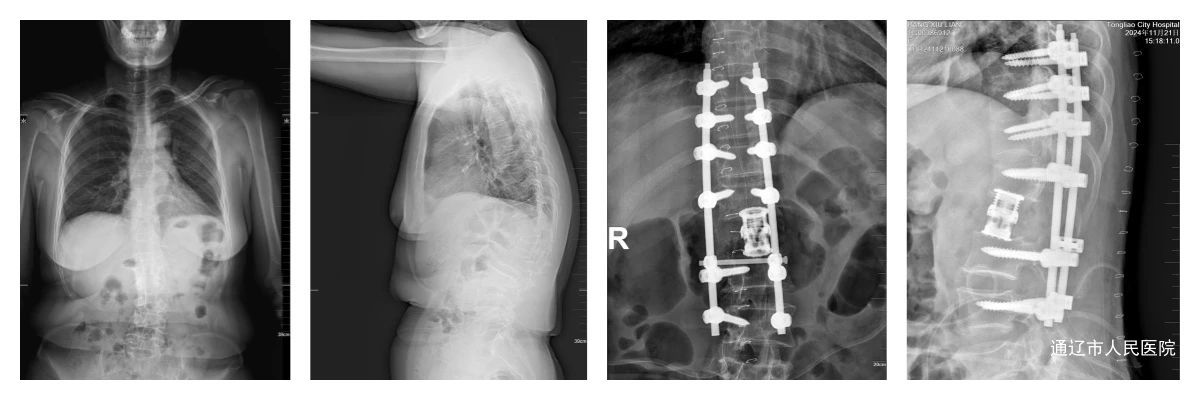 手术在麻醉科等多学科的配合下,由脊柱外科手术团队精准实施。术中,进行胸椎椎板减压,仔细去除钙化的黄韧带,逐步解除脊髓所受的压迫。随后,实施腰1椎体5级截骨,并将人工椎体完美植入,重建脊柱稳定性,手术历时6小时顺利完成。术后患者右下肢肌力逐渐恢复,已提升至2 级,患者极为满意。