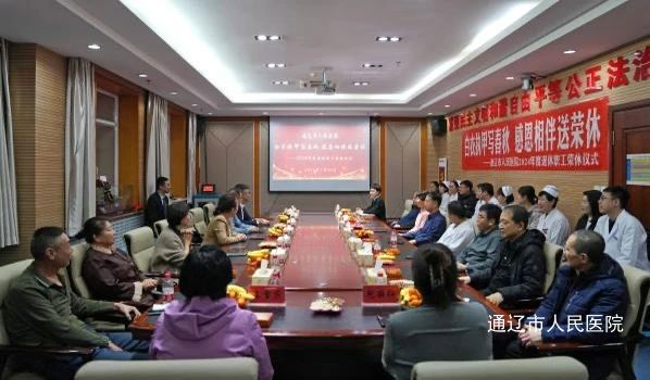 莫道桑榆晚,为霞尚满天。1月20日,我院在全科医师培训楼808会议室举办了一场庄重而温馨的2024年度退休职工荣休仪式。党委书记金洁,副书记、副院长陈光烈,副院长杜艳秋、张国友出席仪式,荣休职工、党委办公室、人事部、工会、离退休人员工作科、荣休科室代表及相关职能科室人员参加仪式。仪式由党委办公室主任徐晶芳主持。