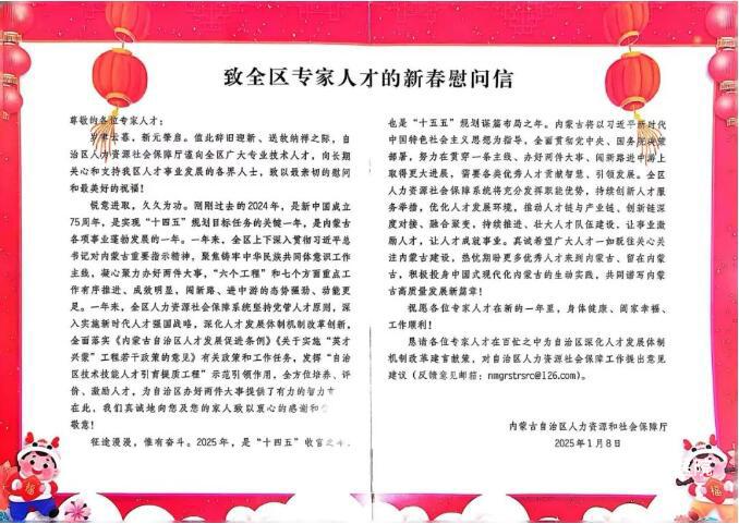 张会禹一行向燕飞送来了新春的问候和美好的祝愿,传达了自治区人社厅、市人社局对专家人才的关怀,并详细询问了燕飞的工作和生活情况。对燕飞在骨科及运动医学领域所取得的卓越成就,以及为自治区医疗卫生事业发展所做出的突出贡献给予了高度评价。希望燕飞能够持续发挥示范引领作用,培育更多优秀医疗人才,为提升内蒙古自治区医疗水平、守护人民群众健康贡献更多力量。交谈结束后,市人社领导郑重地向燕飞递上了内蒙古自治区社会保障厅的慰问信。这封慰问信承载着自治区对专家们的医疗事业深深敬意与关怀,肯定了他们为自治区发展付出的辛勤努力。燕飞对市人社领导的慰问表达了衷心的感谢。他表示,这份荣誉不仅属于自己,更属于整个医院的专家团队。在未来的工作中,他将继续发挥专业优势,带领团队不断探索创新,为提高自治区骨科及运动医学诊疗水平、保障人民群众的健康福祉贡献更多力量。此次慰问活动,让我院专家真切感受到了自治区人社厅和通辽市人社局的关怀与重视,也激励着全体医务人员在新的一年里以更饱满的热情投入到工作中。我院将进一步加大对专业人才培养的关注和学科建设的投入力度,奋力开创省级区域医疗中心发展新局面。