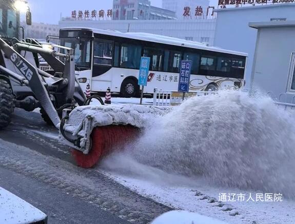 为尽快畅通就诊通道,保障来院群众通行安全,确保我院医疗工作正常进行,我院党委、院委会积极部署,以雪为令,迅速组织干部职工开展扫雪除冰工作。总务科联合院内物管公司,提前调试准备好大型除雪车、手推除雪机、雪铲、扫把等除雪器具,应急储备防滑毯,融雪盐等。同时做好降雪期间人员分工计划、除雪计划等一切前置工作。医院各科室职工纷纷投身到扫雪除冰工作中,大家不畏严寒,齐心协力,忙碌的身影在皑皑白雪中形成了一幅幅亮丽的风景。经过全院共同努力,院内主要通道、停车场、出入口、台阶区域积雪被清理干净;斜坡、台阶等易滑路段已铺设防滑地垫;防滑提示与交通疏散工作完备待用。变化的是天气,不变的是初心,阑珊雪意中生命的故事在这里延续。此次扫雪活动,不仅为就诊患者开出一条“平安路”“温暖路”,也彰显出我院良好的精神面貌与团队凝聚力,我们用最质朴的方式和最诚挚的热情为前来就诊的患者提供了安全、温馨的诊疗环境,开启了通辽市人民医院乙巳蛇年欣欣向荣的新篇章。