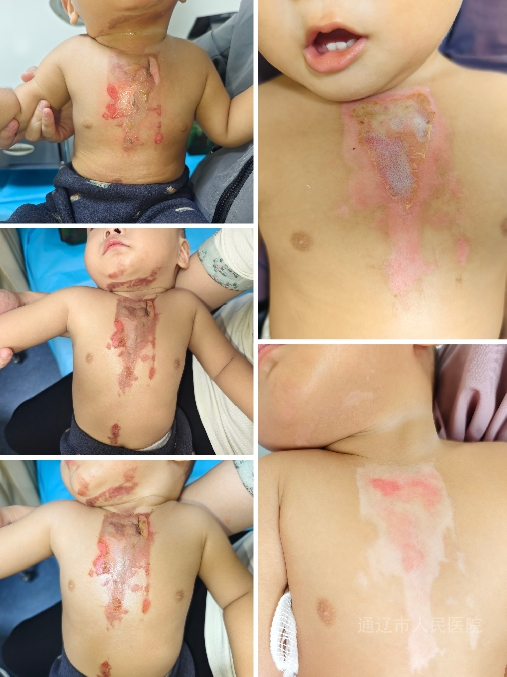 李志在近期还成功救治一名15个月大的烫伤男性患儿。患儿因热油导致颈部、胸部、腹部烫伤,创面肿胀明显、起散在水疱、去腐皮基底部呈潮红色或红白相间,有淡黄色渗液,TBSA为6%、属混合Ⅱ度烫伤。为得到有效救治,患儿最终来到我院门诊就诊。李志评估患儿后,制定了精细的治疗方案,同时给予创面清洁、抗感染、营养支持、再生医疗技术及创面换药等一系列措施。每一步操作都极其谨慎。令人惊喜的是,换药期间年龄尚小的患儿全程非常配合,无哭闹表现。于19天后,患儿创面原位愈合,后期也顺利开展了抗疤痕治疗。