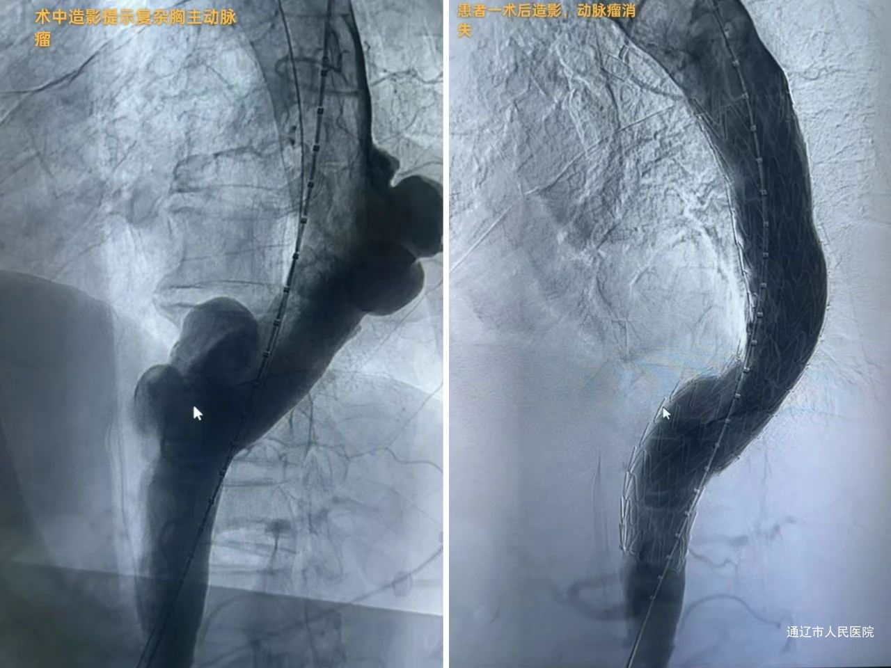 近日,我院血管肿瘤介入科魏东升主任团队联合麻醉科、医学影像科、重症医学科等多学科团队,由副主任医师梁羽担任手术者,主治医师张贺然、那日苏担任助手,成功完成多例高难度胸主动脉瘤、腹主动脉瘤及主动脉夹层介入手术,标志着我院在大血管疾病微创治疗领域达到区域领先水平,为患者带来更优质、精准的诊疗选择。