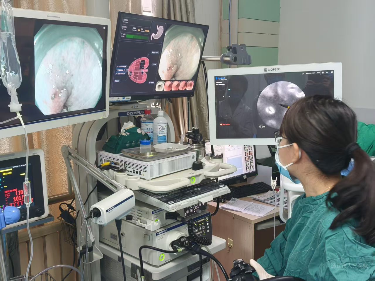 近日,我院消化内镜中心在主任庞慧芳带领下再次取得重大突破,在护理团队与麻醉团队的密切配合下,成功为90岁高龄患者完成共聚焦显微内镜(CLE)引导下食管上段多发早癌手术,彰显我院在消化道早癌诊疗领域的领先实力与精准医疗水平,在老年食管癌患者的早诊早治方面积累了丰富的临床经验。