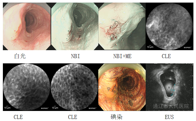 这位90岁老年男性患者因“间断反酸烧心4年,进食哽咽感1个月”慕名前来我院消化内镜中心行电子胃镜检查。庞慧芳通过电子胃镜及放大内镜检查,发现食管上段、中段各有一处可疑早癌病变。经活检,食管上段确诊为高级别鳞状上皮内瘤变,中段为糜烂性黏膜炎。进一步胸部增强CT及超声内镜(EUS)检查显示,病变符合内镜下黏膜剥离术(ESD)治疗指征。考虑患者高龄,且伴有脑梗、肺气肿等基础疾病,胸外科会诊建议采用内镜微创手术。