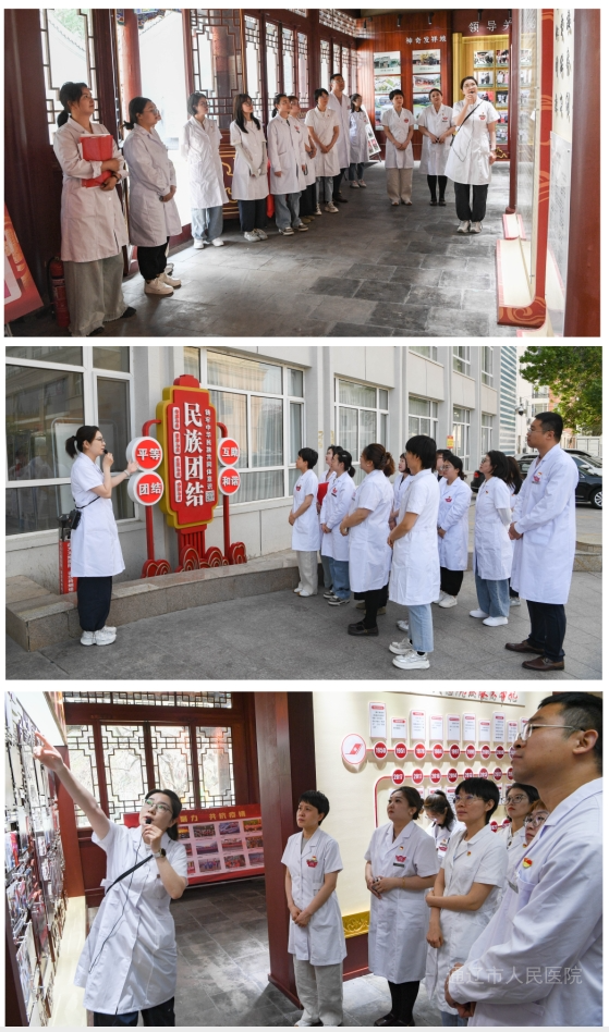 宣讲会后,第一党小组组长张宝敏带领党员群众参观我院院区内的民族团结宣传版块、党建文化长廊、党史馆及院史馆。通过实地参观,进一步促进党员群众形成“共同团结奋斗、共同繁荣发展”的思想共识,让民族团结理念更加深入人心,确保此次民族团结政策宣讲活动形式生动、成效显著。