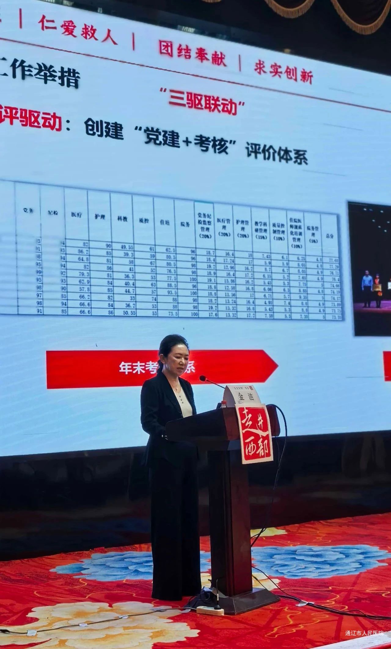 院党委书记金洁做了题为《通辽市人民医院三级公立医院绩效监测工作情况汇报》的分享交流。介绍我院创新构建“4×3”绩效监测体系的相关经验做法,即坚持政治导向、问题导向、结果导向“三个导向”战略引领;实施合作赋能、数字赋能、文化赋能“三维赋能”强基工程;打造病案管理标准化、技术管理精细化、指标管理持续化“三化一体”管理体系;建立机制驱动、考评驱动、改革驱动“三驱联动”长效机制。通过多措并举,最终形成“绩效监测-促进高质量发展-提高人民群众获得感”转化链。