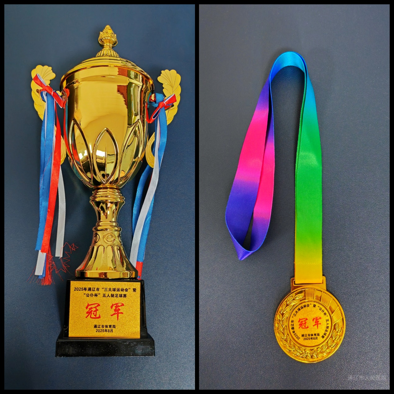 近日,2025年通辽市“公仆杯”五人制足球赛圆满落幕,我院足球队以七战不败的傲人战绩,从14支参赛队伍中突围,斩获冠军。