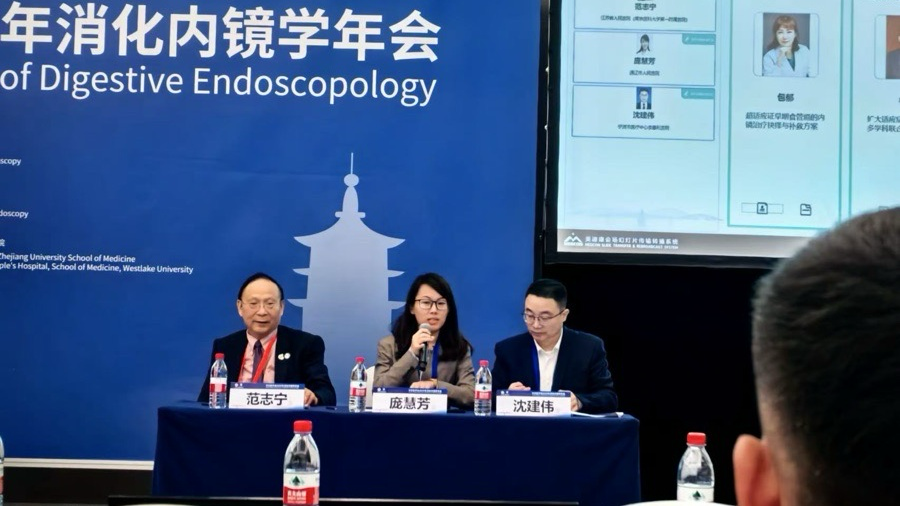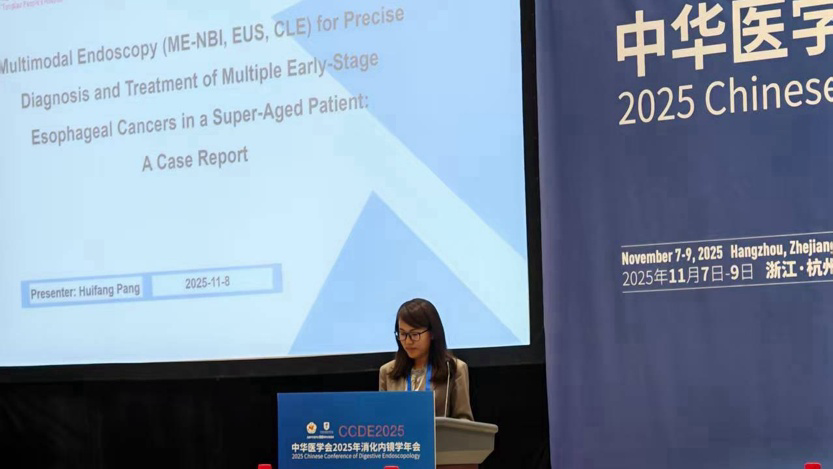 庞慧芳作为中华医学会消化内镜学会青年委员受邀参加消化道早癌分会场的学术主持,与全国顶尖专家围绕消化道早癌的内镜下诊治前沿进行深度学习交流;此外,在青年分会场做主题为《Multimodal Endoscopy (ME-NBI, EUS, CLE) for Precise Diagnosis and Treatment of Multiple Early-Stage Esophageal Cancers in a Super-Aged Patient: A Case Report》的全英学术讲座。