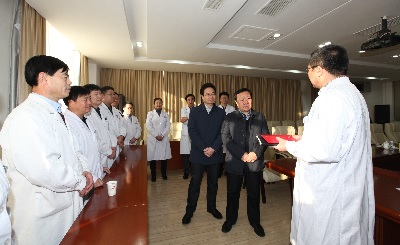 鸡年春节将至,冒着冬日严寒,1月18日上午,市委副书记、组织部部长杨静波、市委常委、副市长贺海东等领导来到我院,代表市委、市政府看望慰问春节前夕依然奋战在临床一线的医务人员,把党和政府的关怀送到基层,把温暖送到医务人员心里,并送来了慰问金。