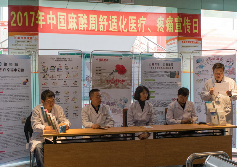 在3月30日第24个“国际医生节”来临之际,为积极响应中华医学会麻醉学分会举办2017年“中国麻醉周”大型公益活动,推动舒适化医疗的实施,更好的配合手术麻醉围术期的康复,同时为了让更多的疼痛患者科学就医、重视疼痛、消除疼痛,使更多待产家庭能够了解无痛分娩的益处,我院于4月1日在东院区门诊大厅隆重举办了“2017年中国麻醉周麻醉科普知识宣传公益活动及疼痛知识宣传”活动。