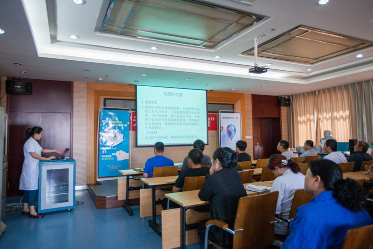 5月31日上午,我院预防保健科协同门诊部、戒烟门诊、肿瘤内科、心内三科、泌尿外科、产科、妇科、普二科、神经内四科等相关科室在门诊一楼大厅举办了义诊活动。活动现场,医务人员免费为群众测量体内一氧化碳浓度、发放多种多样的宣传折页,并为前来咨询的群众进行戒烟指导;门诊部通过LED屏幕、电视等多媒体渠道向过往群众介绍烟草的危害、戒烟的方法,引导和鼓励广大市民积极参与控烟活动;我院计算机网络信息中心也在医院官方网站及微信公众平台上推出了控烟科普专题。同日下午三点,预防保健科及戒烟门诊在医师培训楼举办了以“吸烟的危害及戒烟的方法”为主题的健康教育讲座,各临床科室的患者及家属近60余人参加了讲座,现场气氛活跃、互动热烈。