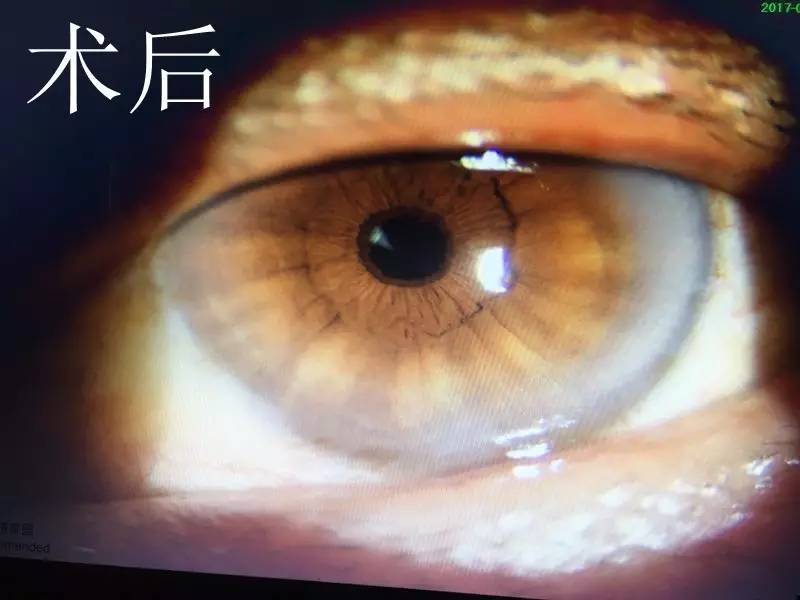 右眼晶状体略混浊,左眼晶状体白色混浊,眼底窥不清。手术后第一天远、中、近视力均为1.0。