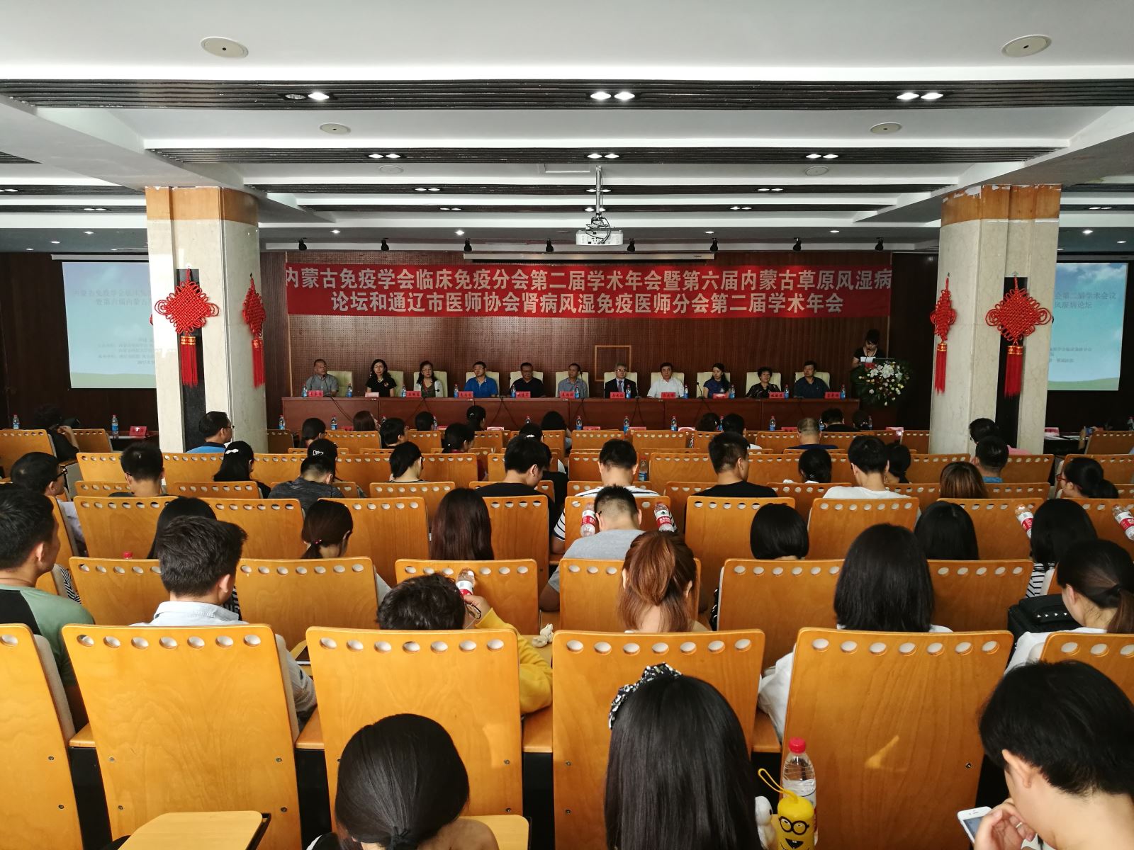 2017年08月19日,由自治区科协和内蒙古免疫学会共同主办,内蒙古免疫学会临床免疫分会、通辽市医院和包头医学院第一附属医院共同承办的2017年度自治区科协重点学术交流项目—“第六届内蒙古草原风湿病论坛暨内蒙古免疫学会临床免疫分会学术年会”在通辽市医院隆重召开。本次大会也是内蒙古免疫学会连续三年承办自治区科协重点学术交流项目。中国医药生物技术协会、卫生部北京医院、北京大学人民医院、解放军309医院、内蒙古医科大学、内蒙古自治区人民医院、包头医学院第一附属医院、通辽市医院、内蒙古民族大学附属医院等单位领导及免疫学领域专家、学者近150人出席会议。