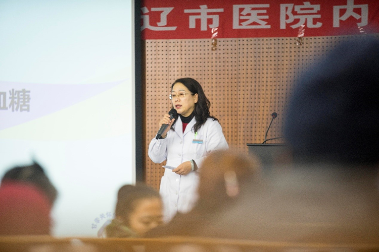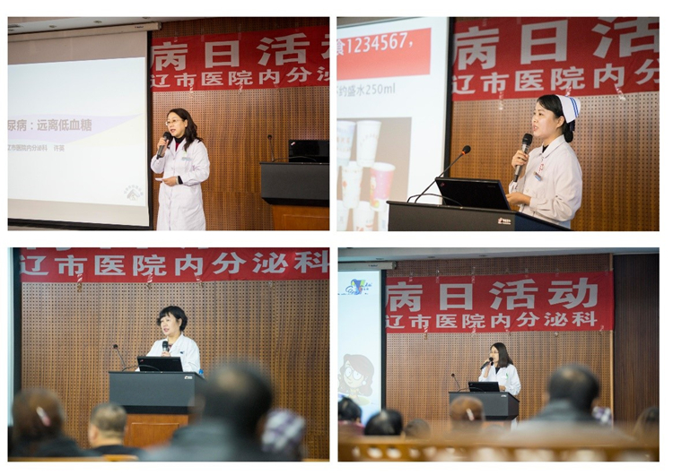 早八点,健康知识讲座准时开讲。主任许英、护士长郭雪梅、主任医师王立杰、主治医师关奉菊分别以《远离低血糖》、《糖尿病饮食与运动》《糖尿病周围神经病变》、《糖尿病血糖检测》为主题,做了精彩的讲座,向广大市民讲解了糖尿病防治的科普知识。