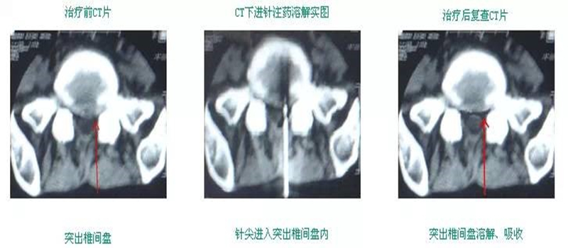 胶原酶是一种主要溶解胶原蛋白的酶,能有效地溶解髓核和纤维环中的Ⅰ型和Ⅱ型胶原,将胶原酶注入病变的椎间盘内或突出物的周围,依靠胶原酶分解胶原纤维的药理作用来溶解胶原组织,使突出物减小或消失,以缓解或消除其对神经组织的压迫,从而使患者的临床症状得到改善,这种治疗方法称为胶原酶溶解术。