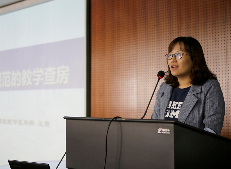 图为内蒙古医科大学第一附属医院甲乳科副主任医师王霞讲课现场