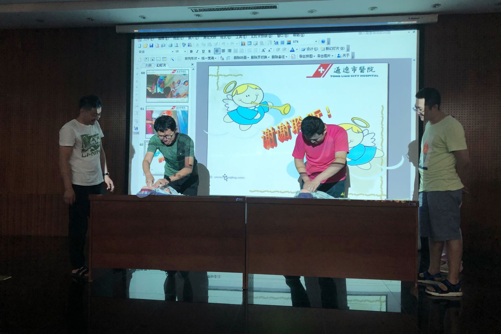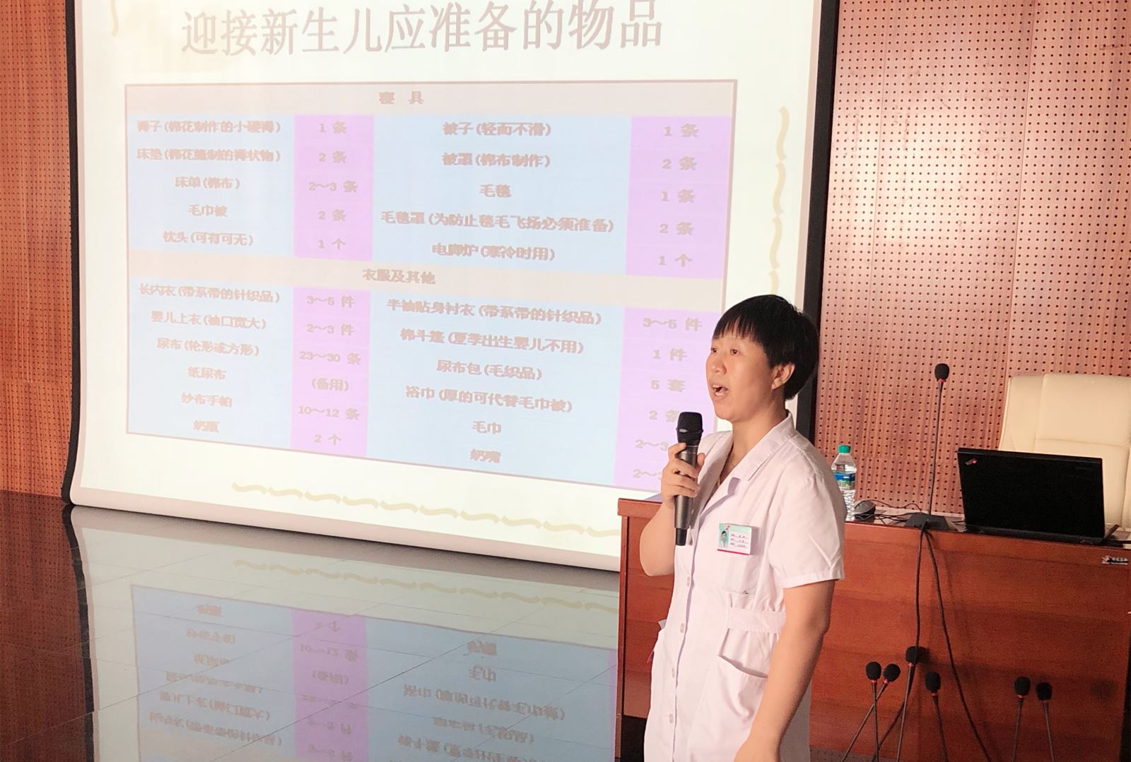 课堂上,我院产科副主任医师刘姝为各位准妈妈悉心地讲解:迎接新生儿应准备的物品、新生儿的日常护理、如何正确应对宝宝可能遇上的一些常见疾病,让孕妈们更有自信地去面对和处理。随后,来自诗安国际母婴会所的工作人员现场示范了护理新生儿的一些实际操作,如:男女宝宝便后处理、如何正确更换尿不湿、宝宝肚脐护理等,准爸妈们纷纷举起手机将整个过程记录下来。准爸爸们更是跃跃欲试,在工作人员的指导下利用道具亲手进行操作。