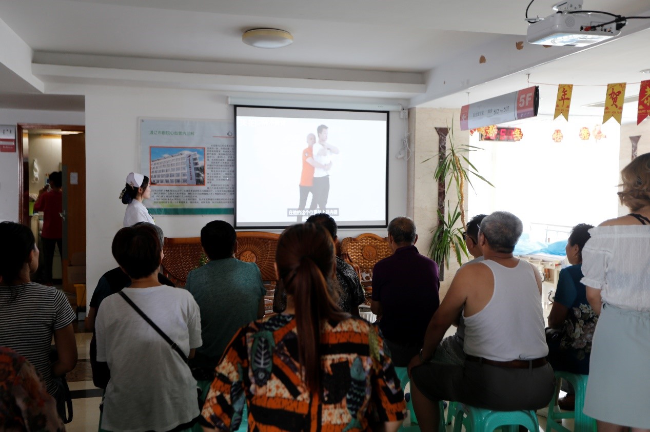 讲座现场,由科室医护人员结合主题视频为患者及家属进行相关疾病预防及急救等方面的专业指导。并邀请家属参与心肺复苏等现场演练,听众纷纷表示通过此次讲座活动对心脑血管疾病的预防和治疗有了更深一步的认识,并给予了较高评价。