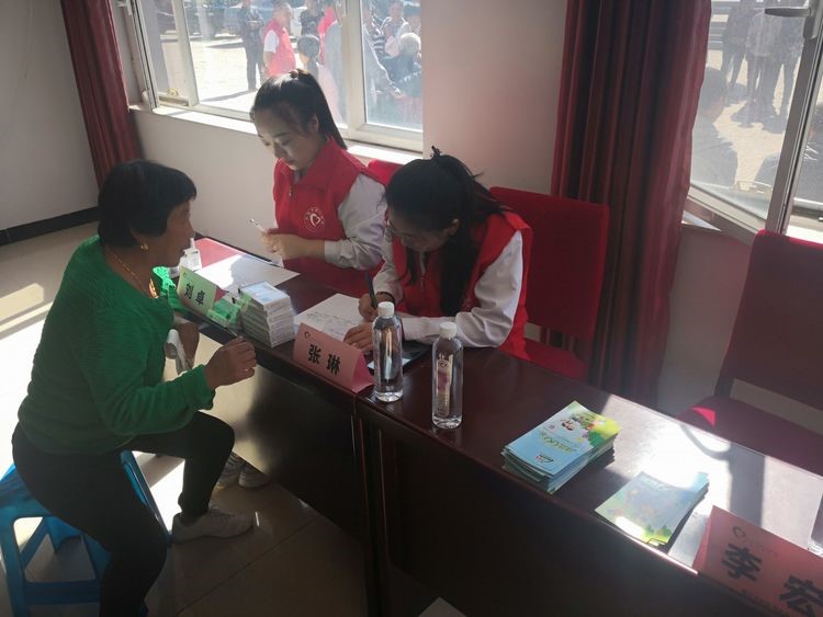 药剂科专家在为村民发放专家开具的药品,并进行热心的询问村民有什么过敏史,并进行了详细的登记,做到每位村民都能合理的用药