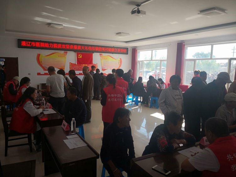 群众的健康问题特别是贫困群众的健康问题历来是精准扶贫重大问题,胜利村90%贫困户全部因病致贫,通辽市医院雷院长及包联领导乔院长每月多次到胜利村了解村民及贫困户的情况,在与村两委沟通后得知各户因农忙出不了门看病,院领导定于9月8日为胜利村民免费健康义诊,送医送药活动。“同心共铸中国心,助力温暖通辽行”启动会上通辽市医院工会郑主席、大沁他拉镇党委副书记赵书记、志愿者代表张科长分别做出重要讲话通。通辽市医院高度重视此次健康义诊活动,组织了一支复合型的专家队伍,分别来自心内科、呼吸内科、消化内科、内分泌科、神经内科、外科、妇科、乳腺甲状腺科、中蒙医科、功能检查科、心电图室、药剂科、预防保健科13个科室20余名专家队伍,共诊治全村患者300余人,免费发放药品3万多元。通辽市医院此次义诊就是要把健康送到群众身边,就近面对面解决群众的困难,诊治群众常见病多发病,积极为贫困群众排忧解难,提高贫困群众健康水平和健康行为能力。