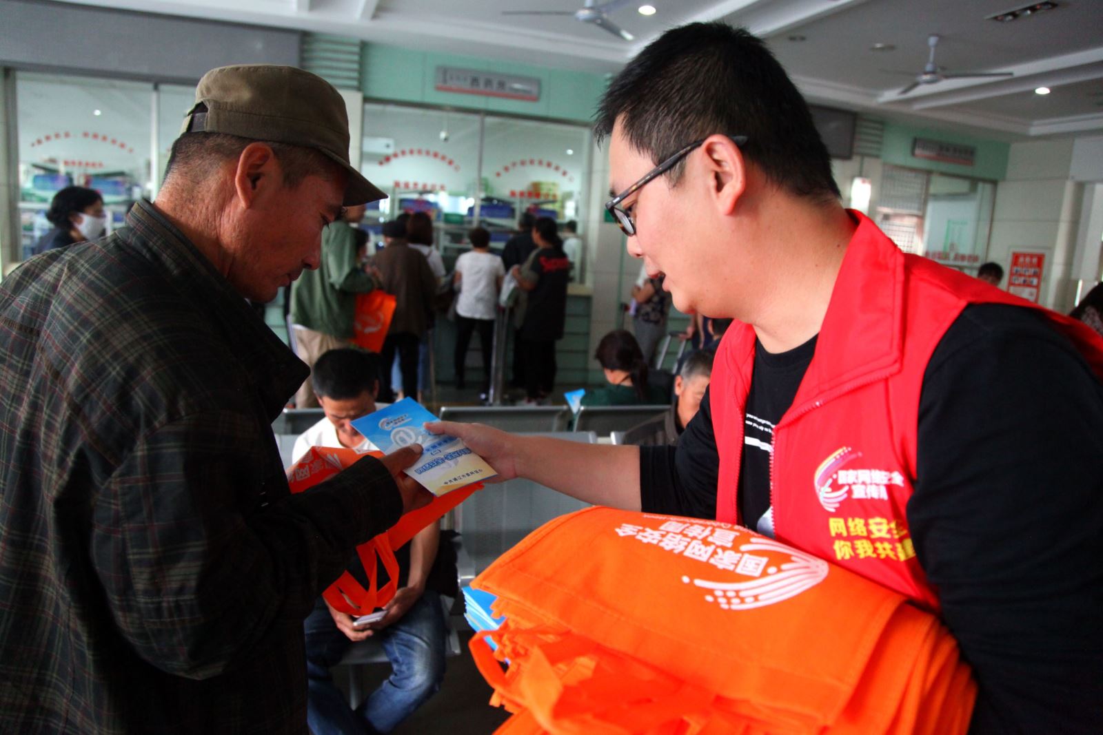 熙熙攘攘的门诊楼内,网络安全宣传展板整齐排列,吸引了众多市民驻足观看。来自我院网络信息中心的志愿者们向过往就诊群众发放《网络安全知识手册》宣传折页和主题环保袋,并对群众提出的问题进行答疑解惑。志愿者们以通俗易懂的形式和面对面沟通的方式向广大人民群众普及网络安全知识,使今年宣传周“网络安全为人民,网络安全靠人民”的活动主题深入人心,得到了参观团的一致好评。