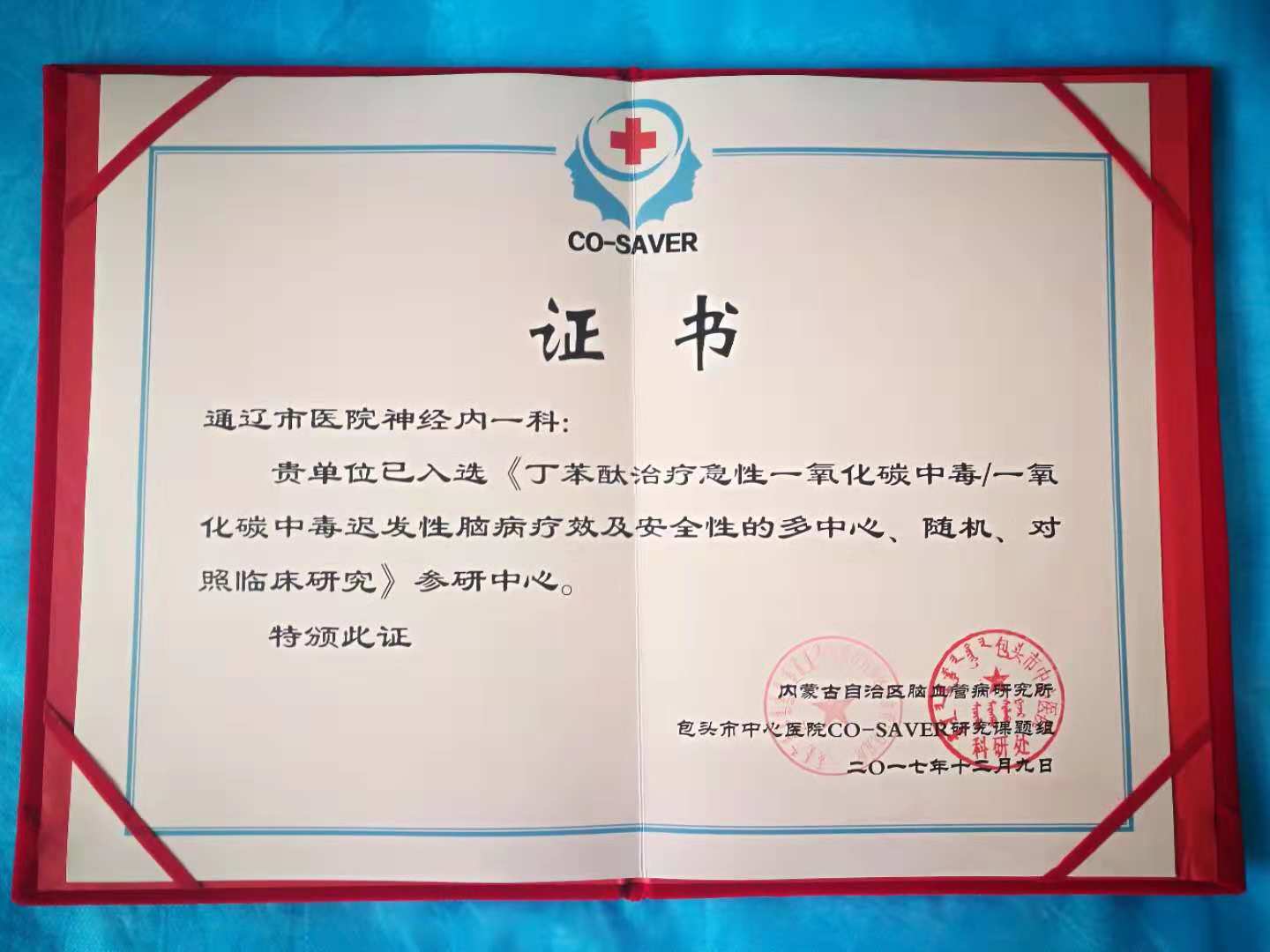 2017年12月,丁苯酞治疗急性一氧化碳中毒/一氧化碳中毒迟发性脑病疗效及安全性的多中心、随机、对照临床研究(简称 CO-SAVER 研究),在我国北疆内蒙古省包头市正式启动。丁苯酞具有抑制炎症反应、增加缺血区脑血流量和改善微循环等机制,与 CO 中毒及 DEACMP 所致的缺血缺氧损伤、应激反应损伤及微循环障碍有多处契合点。