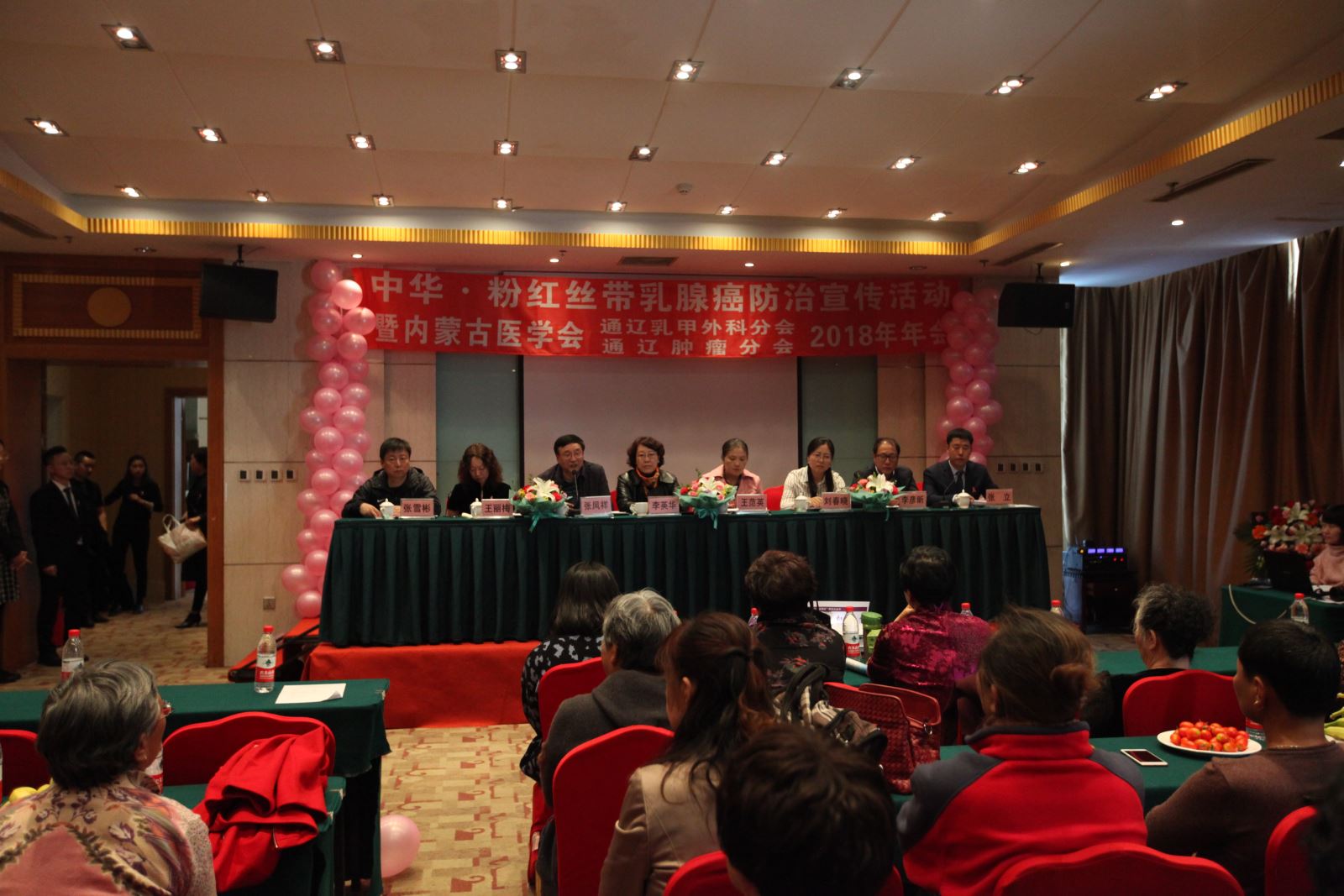 今年十月份是第十六个“世界乳腺癌防治月”。为了向公众普及乳腺疾病的防治知识,降低乳腺癌发病率,10月20日,由我院乳腺甲状腺外科(下文简称:乳甲外科)、肿瘤放疗科联合承办的中华·粉红丝带乳腺癌防治宣传活动暨内蒙古自治区医学会通辽乳甲外科分会、通辽肿瘤分会2018年学术年会在科尔沁迎宾馆隆重召开。本次会议得到通辽市卫生计生委、市医学会、市妇联的全力支持。市医学会会长李英华、市妇联副调研员王范英、市妇联妇儿工委办主任刘春晓、我院副院长张凤祥出席会议。此次会议不仅聚集了乳甲外科、肿瘤放疗科的医护人员,还吸引了数十名来自我市各地区的乳腺癌患者及患者家属前来参会。