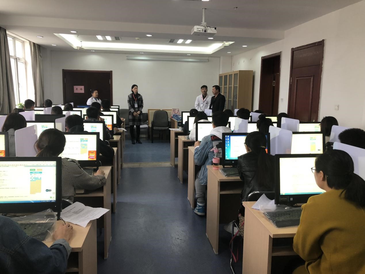 理论考试试题为医博士题库中抽取,由住培领导小组亲自审核,考试在思维训练室进行,采取人机对话的考试模式,要求所有考生上交手机,按照准考证号入座。