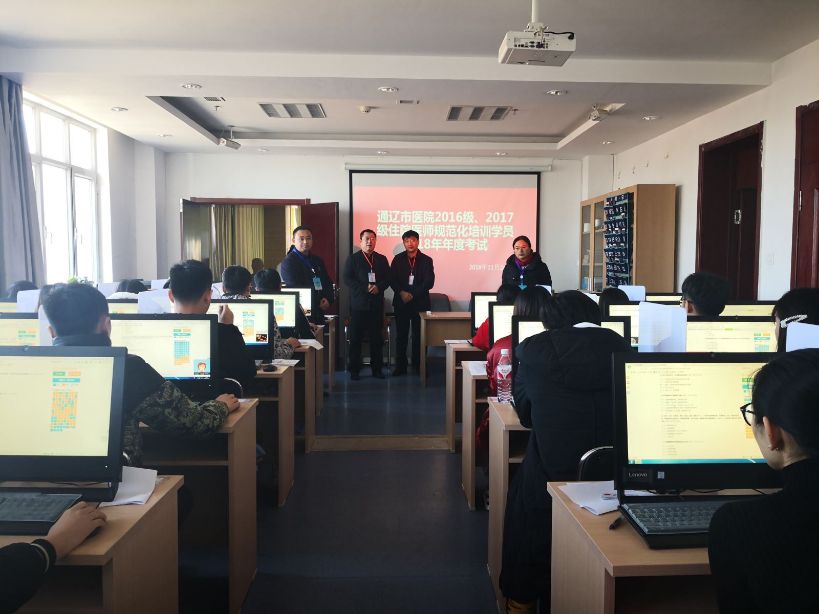 根据《内蒙古自治区卫生健康委员会关于开展全区2018年住院医师规范化培训学员年度考核的通知》(内卫计科教字[2018]575号)文件要求,为确保考核公平公正、科学有效,我院成立了住培学员2018年度考核领导小组,组长由雷彤院长担任,副组长由万有贵副院长担任,医务科承担具体考务组织工作,通辽市卫生计生委、通辽市医院住院医师规范化培训基地联动实施。特制定详细的考核实施方案,于2018年11月24日按照实施方案规范有序的组织了2016、2017级住院医师规范化培训学员2018年年度考核。内蒙古自治区卫生健康委员会巡考官张旭东老师、杨建玲老师对本次年度考核全程进行了巡查监督,通辽市卫生计生委赵玉儒副局长、科教科吴丽红科长、通辽市医院万有贵副院长、监察室陈霞副主任,对年度考核进行了巡视指导。