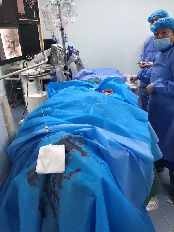 近日,我院神经外科自主完成自治区首例经眶上切开眼上静脉入路海绵窦区硬脑膜动静脉瘘栓塞术,本台手术由刘光宇主任指导,张永哲医师主刀,赵林医师协助,神经外科、手术麻醉科、导管室医护人员通力协作,经过七个半小时紧张有序的默契配合,最终取得圆满成功。患者术后耳鸣症状立即消失,第二天结膜充血明显好转,经住院观察无不良反应,目前已顺利治愈出院。