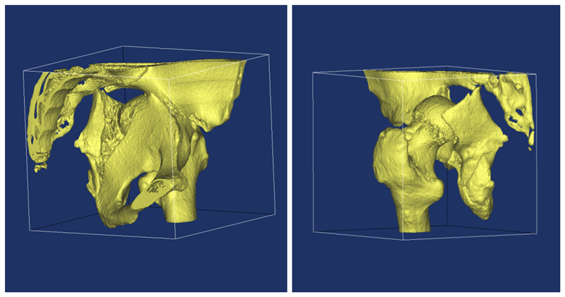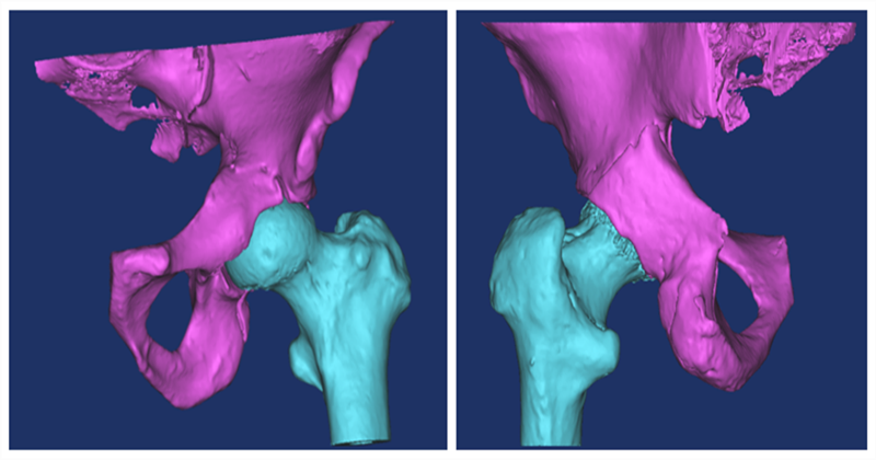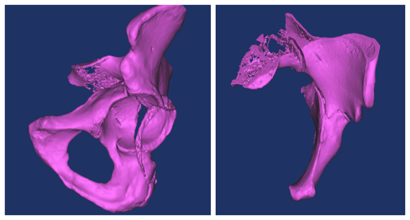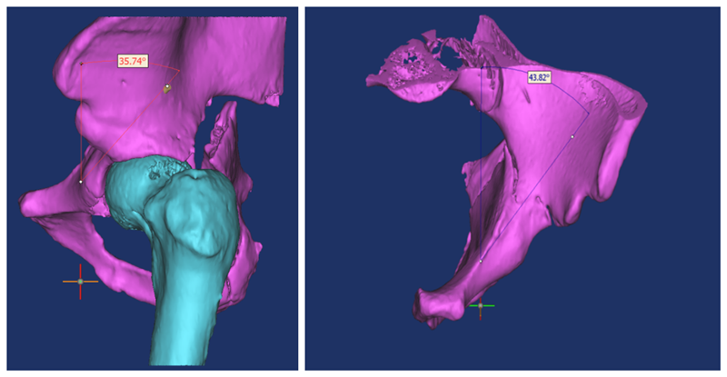 (进行图像分割后获得骨盆髋臼,模拟髂骨斜位与骨盆入口位)