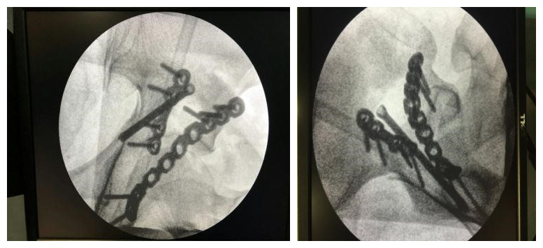 该例前柱通道螺钉置入技术为我科第一例自主完成病例,在手术成功的喜悦背后,我们也加以思考:首先,一项复杂的骨科手术不仅需要术者精湛的手术技巧,还需其他手术成员对该手术有充分的知识理解,只有大家团结协作,心往一起想,劲往一处使,所有难题必会不攻而破;另外,现代骨科技术在秉承了老一辈的成功理念下,不断进行的探索创新,利用计算机模拟导航,不但提高了手术精度,降低了手术难度,但是每一项技术的运用与发展都离不开坚实的基础底蕴,不做盲目手术,不做无准备手术是每一位外科医生的行医标准;最后,在我们完成本例高难度手术之前,查阅了大量文献资料,针对该病例做了备选手术方案,以及术后并发症的预防上做了充足的准备。我科依旧本着严谨、进取、求实、团结的工作作风,为我院的今后发展及本地区的骨科技术提升做出应有的贡献!