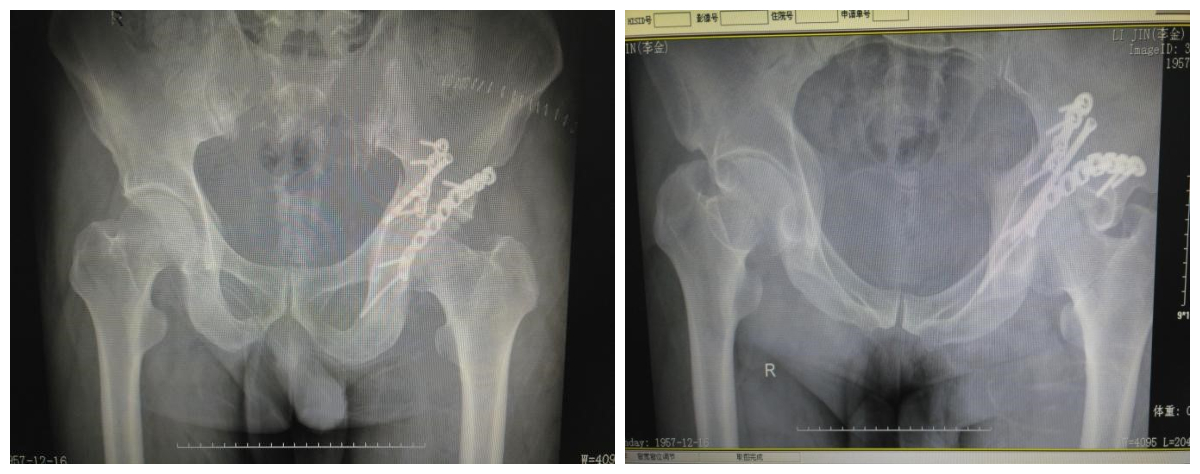 病例介绍:患者李X,男性,60岁,因“车祸致左髋部外伤3小时,疼痛、活动受限”入院,左踝及左足踇趾背伸不能,左小腿外侧及左足背皮肤感觉迟钝,提示左侧坐骨神经损伤。行CT+三维成像提示:髋臼骨折(左),髋关节脱位(左)。急诊行左髋关节脱位手法复位,左股骨髁上骨牵引。并于伤后第7日行左髋臼骨折切开复位内固定术。