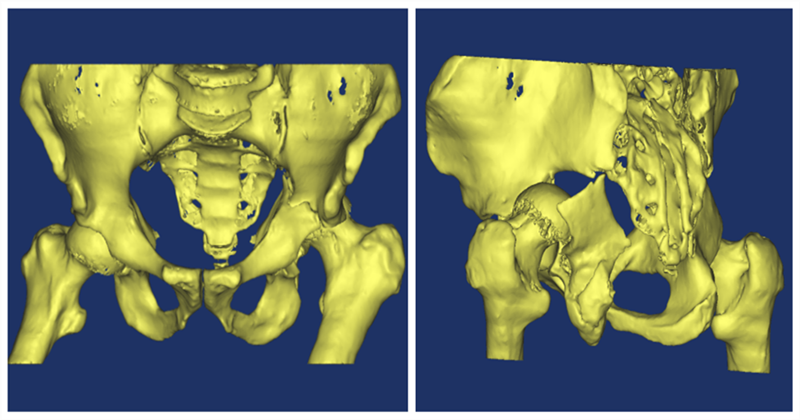 随着现代社会工业的进步和交通运输行业的发展,由各种高能量创伤导致的髋臼骨折的发病率也在逐渐增加。对于粉碎性骨折、骨折线累及髋臼承重区或伴有明显神经症状的患者,常需行骨折切开复位内固定术(open reduction and internal fixation ,ORIF)以达到骨折的解剖复位,缩短患者卧床时间,避免骨折的畸形愈合,最终使患者能够获得良好的功能恢复。但是应用 ORIF 技术时常面临着手术部位的感染、神经血管的损伤、异位骨化、切口愈合缓慢、患侧外展肌力下降、步态异常等问题,其手术并发症的发生率高达 25%,且许多并发症的发生并不是由于骨折本身所导致的,而是由于术中手术暴露方式、术者暴力操作等人为因素所造成的。目前全国骨科技术的前沿代表,北京积水潭医院已经利用计算机导航技术的发展“使用导航系统辅助对髋臼骨盆骨折进行经皮微创固定”获得了满意的临床效果。我科以本院实际情况出发,利用现有技术成功为一位复杂髋臼骨折患者实行了术前通道螺钉规划,极大降低了手术难度,减少手术创伤,使患者得以安全有效的快速康复。