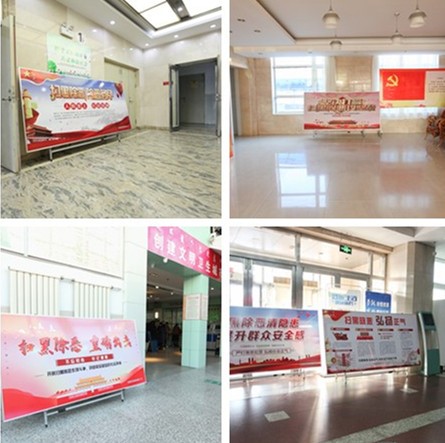 为进一步提高全院职工及广大人民群众的知晓率,医院利用LED电子屏在东西两院区全天候循环滚动播放扫黑除恶宣传口号;制作30余条印有宣传标语的条幅,悬挂在东西两院区及体检中心醒目位置;在东西院区门诊大厅、各住院楼、办公楼、体检中心等处选择人流密集的地点安放20余块宣传展板,展板内容涵盖扫黑除恶知识、重点打击十二类黑恶势力等多方面内容,通过全方位的宣传,切实营造了浓厚的崇尚正义的氛围。