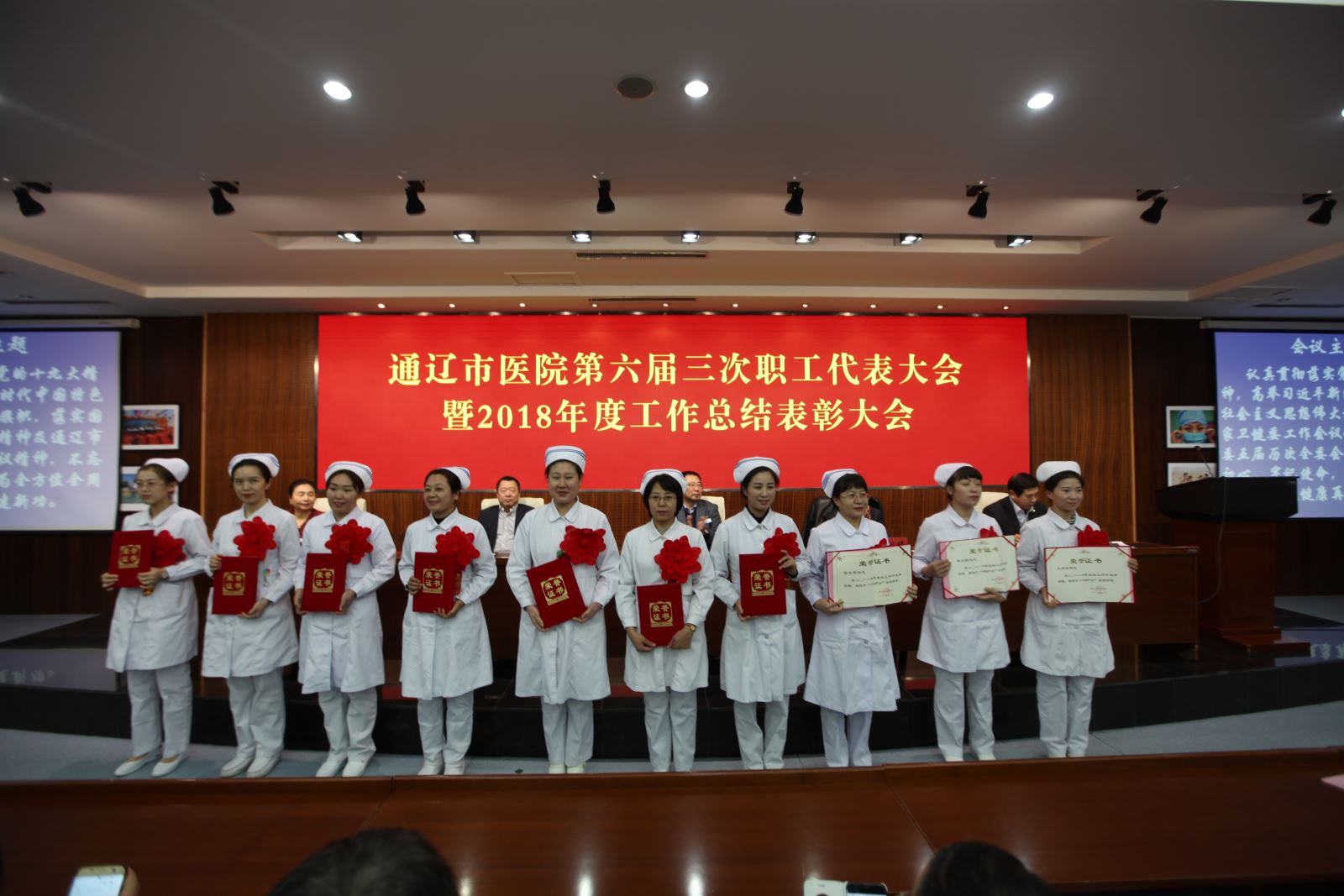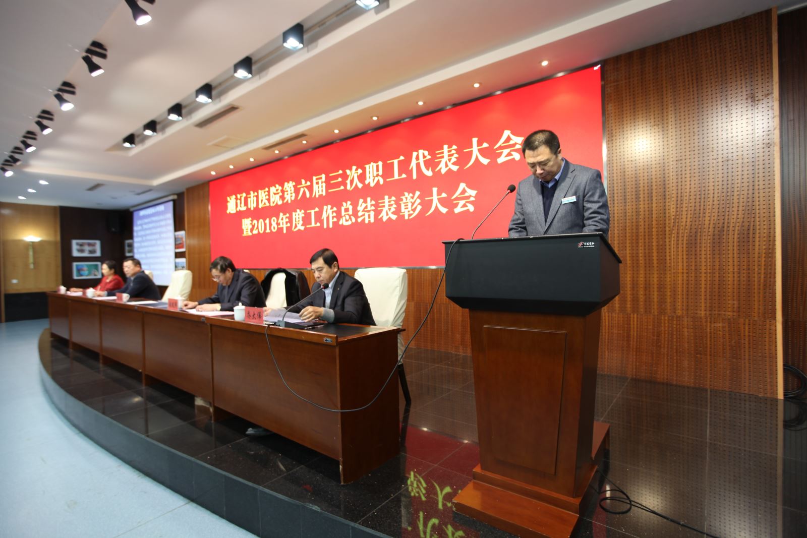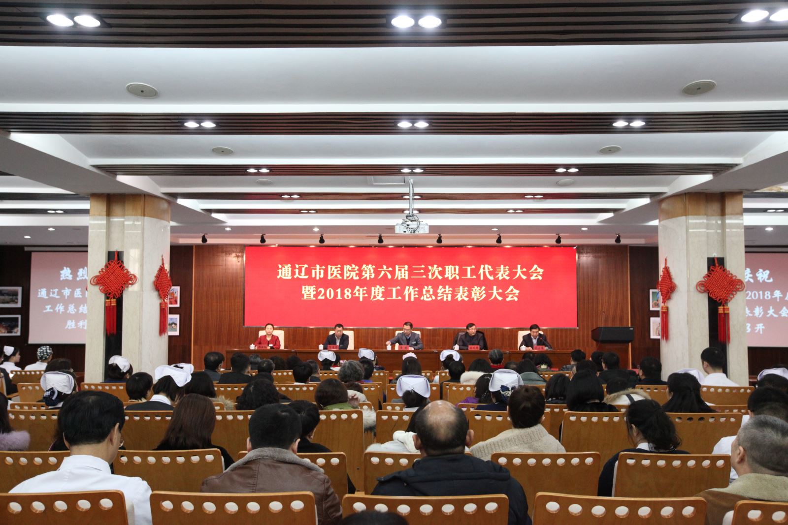 时光满载梦想与希望,告别收获满满的2018年,驶向令人憧憬的2019。伴着新年前夕的祝福与喜悦,1月19日上午9:00,我院在老干部病房多功能会议室隆重召开了通辽市医院第六届三次职工代表大会暨2018年度工作总结表彰大会。会议全面回顾了2018年各项工作,总结经验、表彰先进,并安排部署了2019年的重点工作。乔大伟副院长主持会议。院领导班子成员、全院科主任、护士长、中层管理干部、离退休职工代表、青年业务骨干代表、一线工人代表、受表彰人员以及新闻媒体的朋友共计270余人参加了会议。